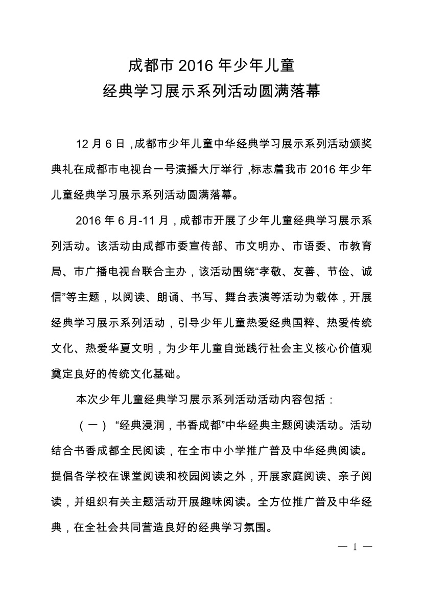成都市2016年少年儿童经典学习展示系列活动颁奖