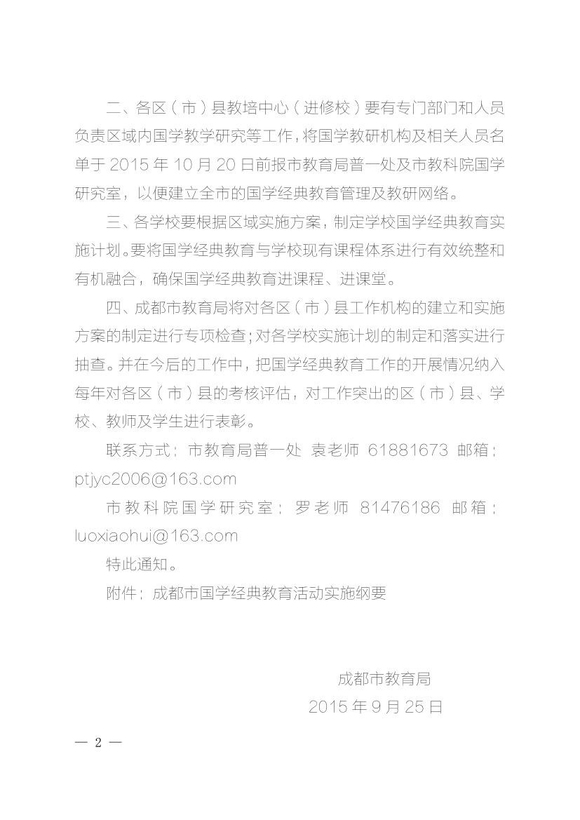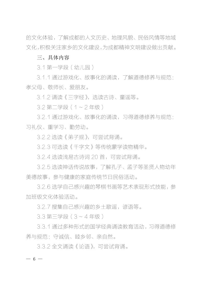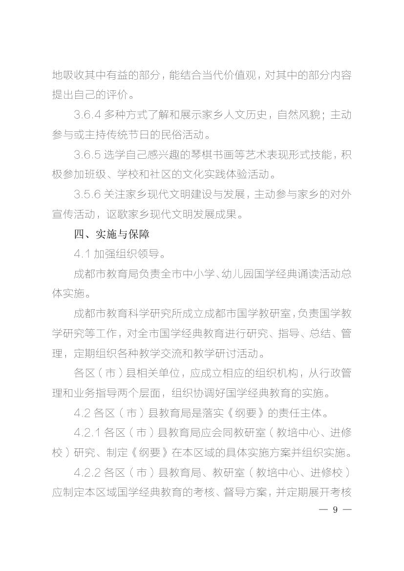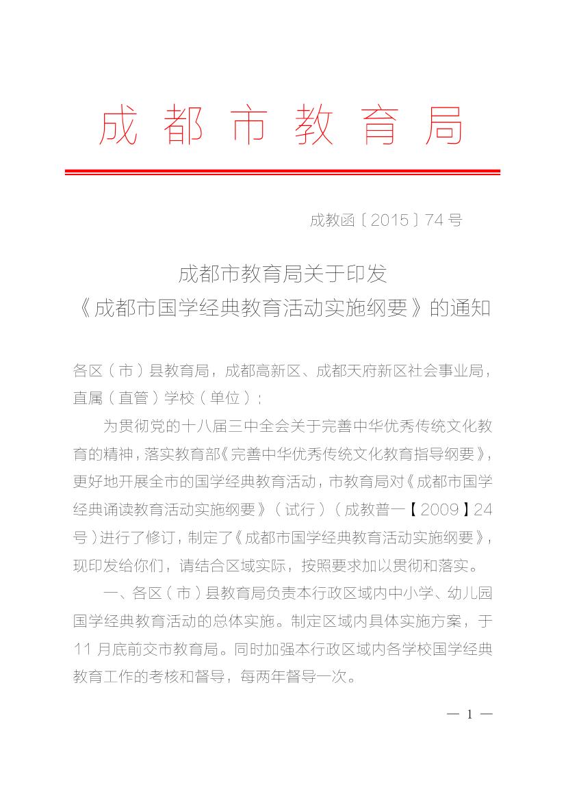 成都市国学经典教育活动实施纲要