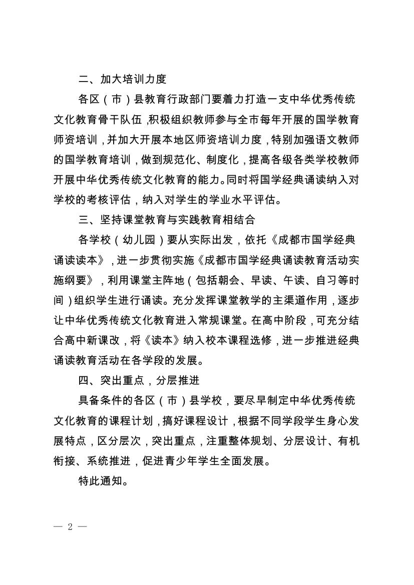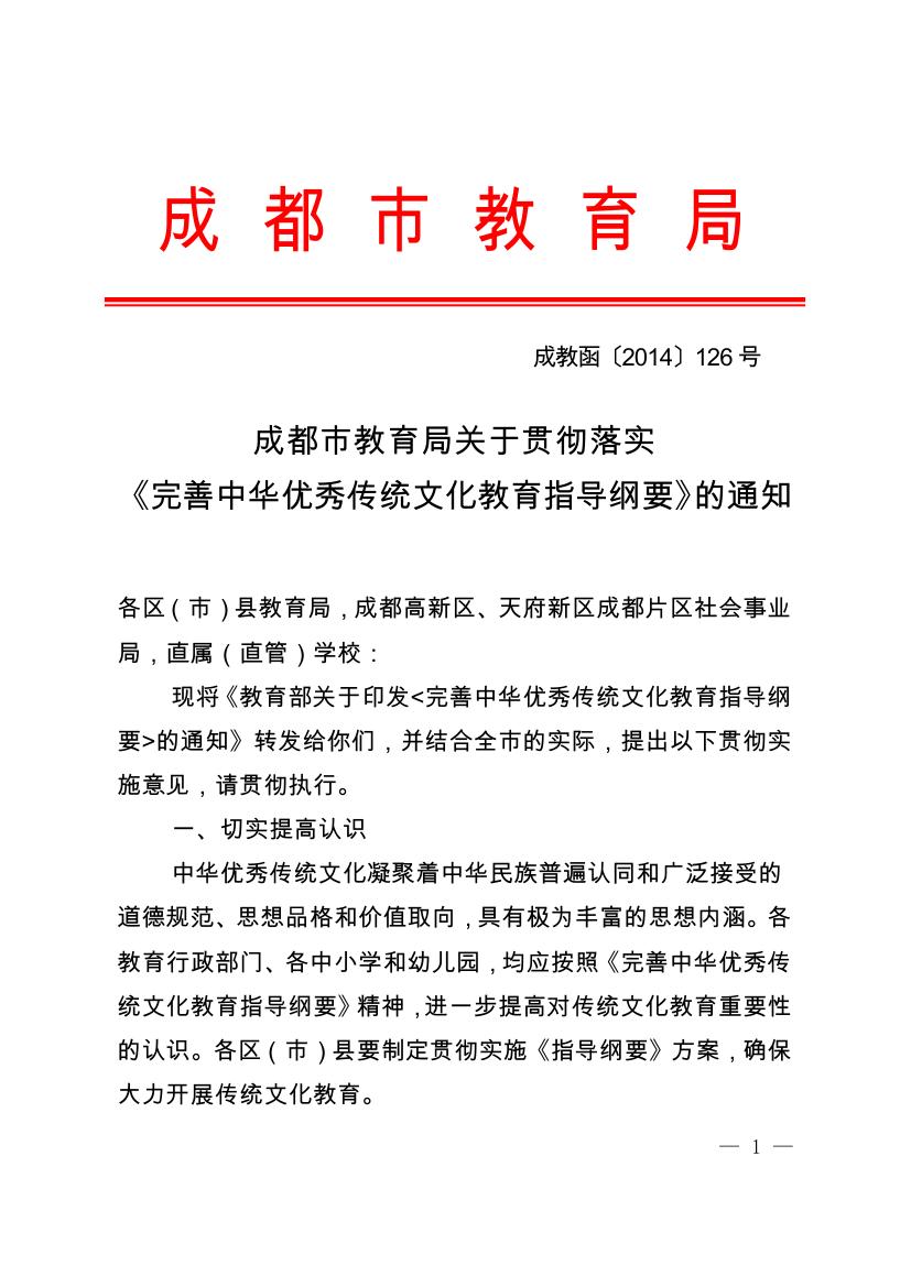 成都市教育局关于贯彻落实 《完善中华优秀传统