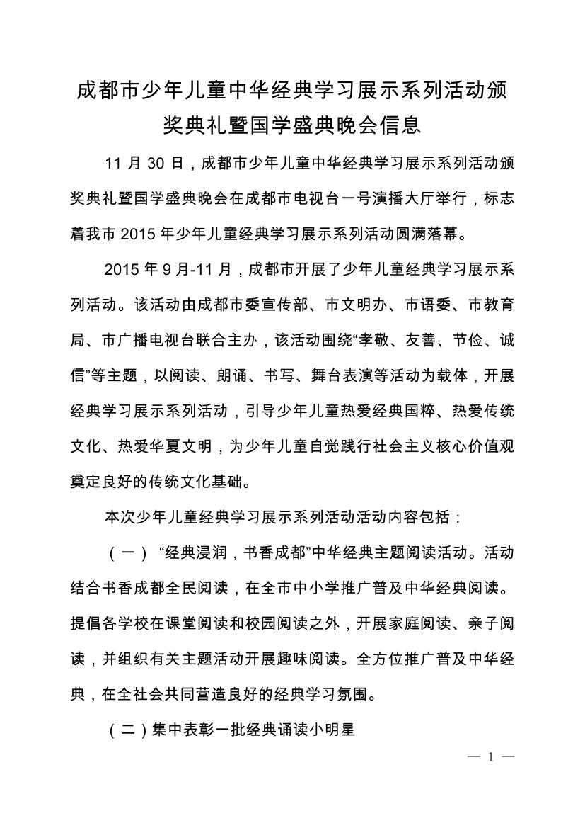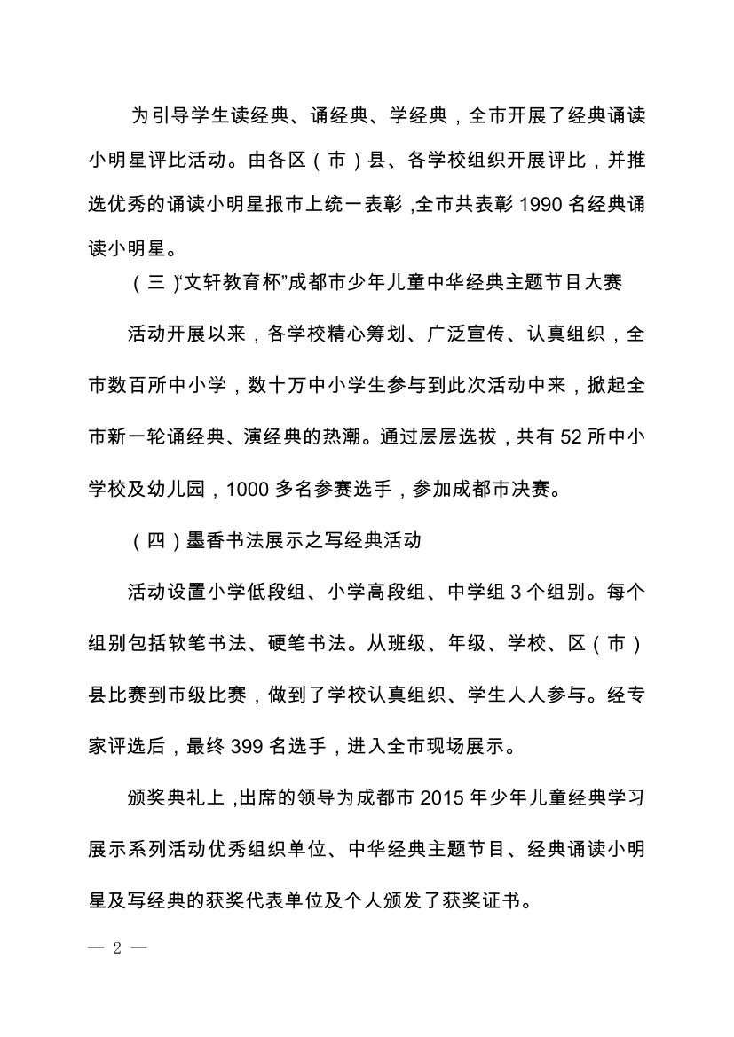 成都市2015年少年儿童经典学习展示系列活动颁奖