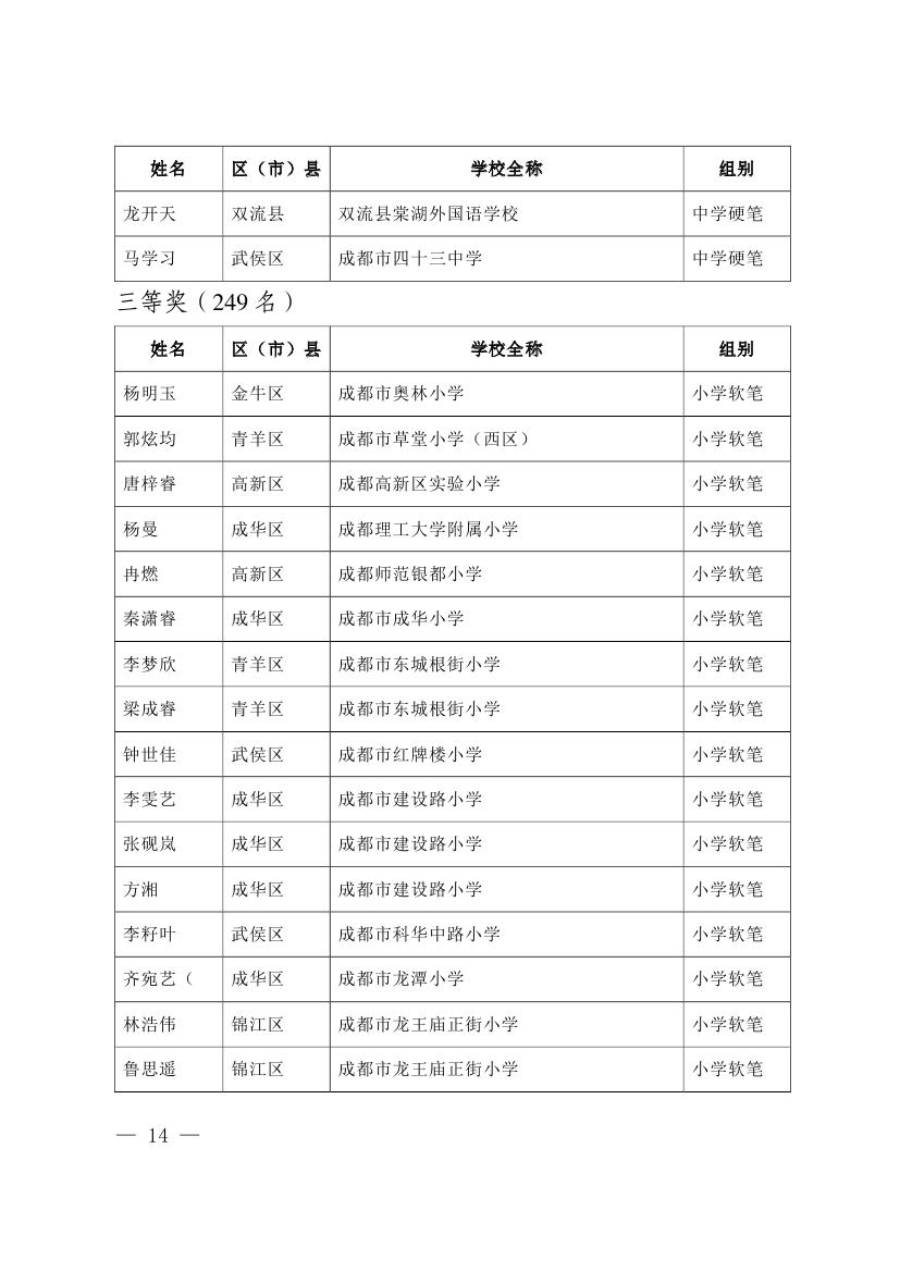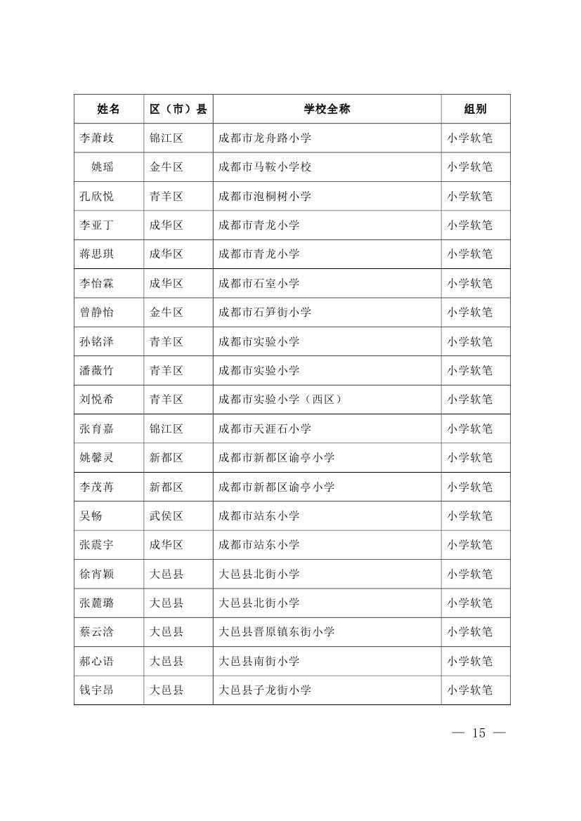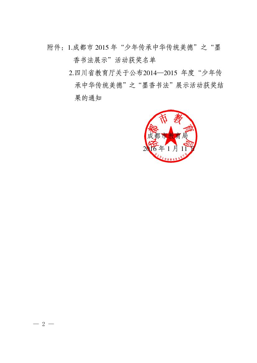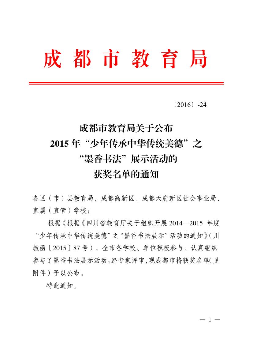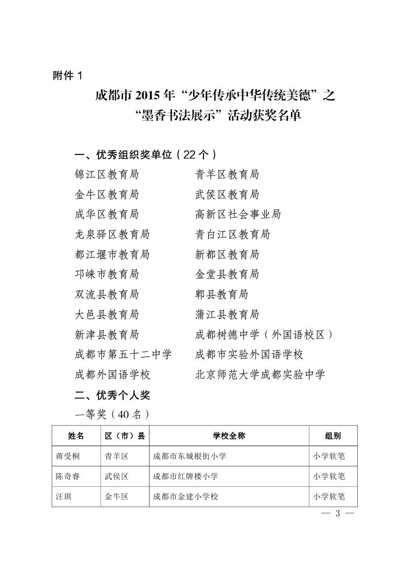 成都市2015年墨香书法展示获奖名单