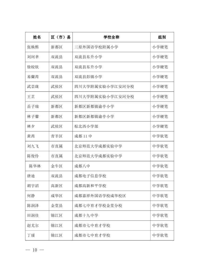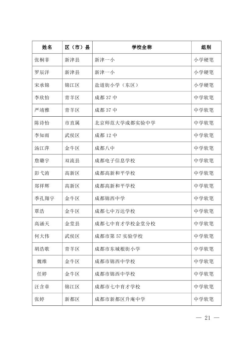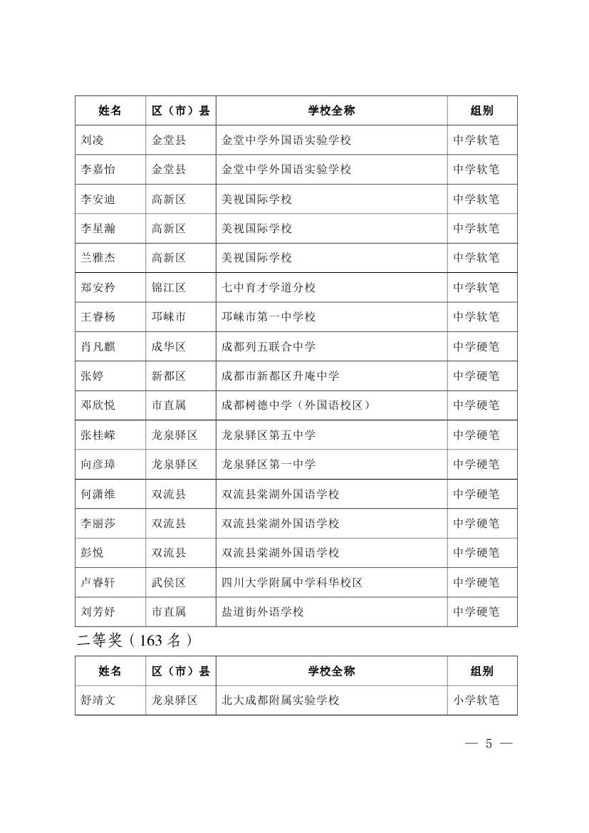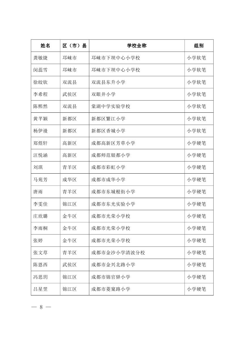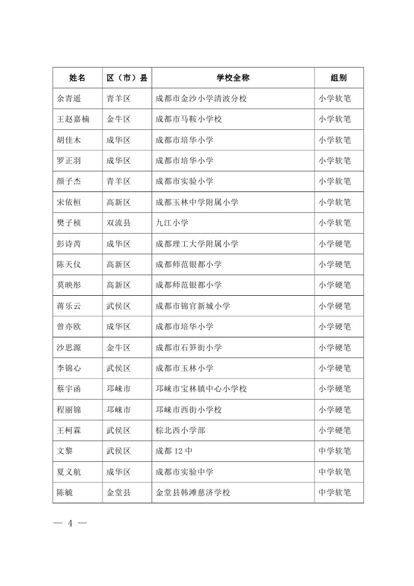 成都市2015年墨香书法展示获奖名单