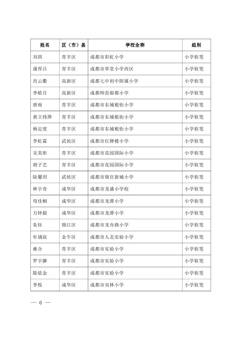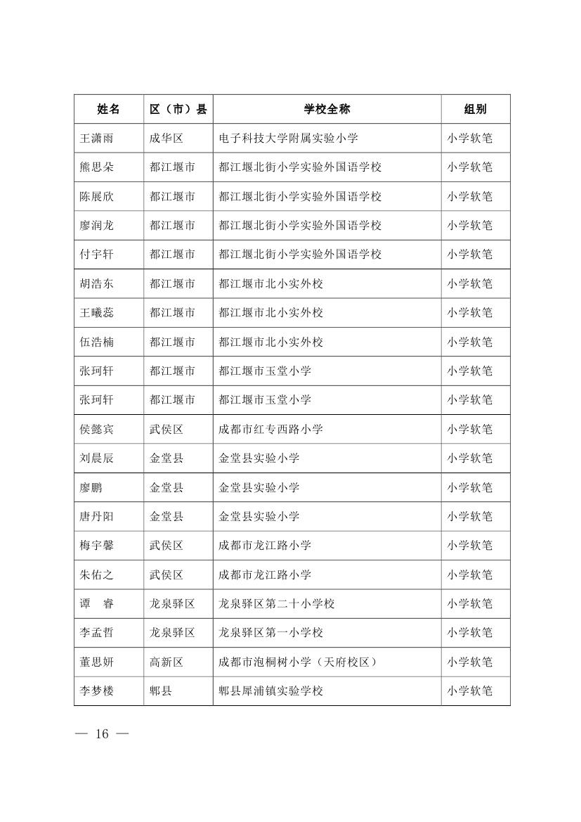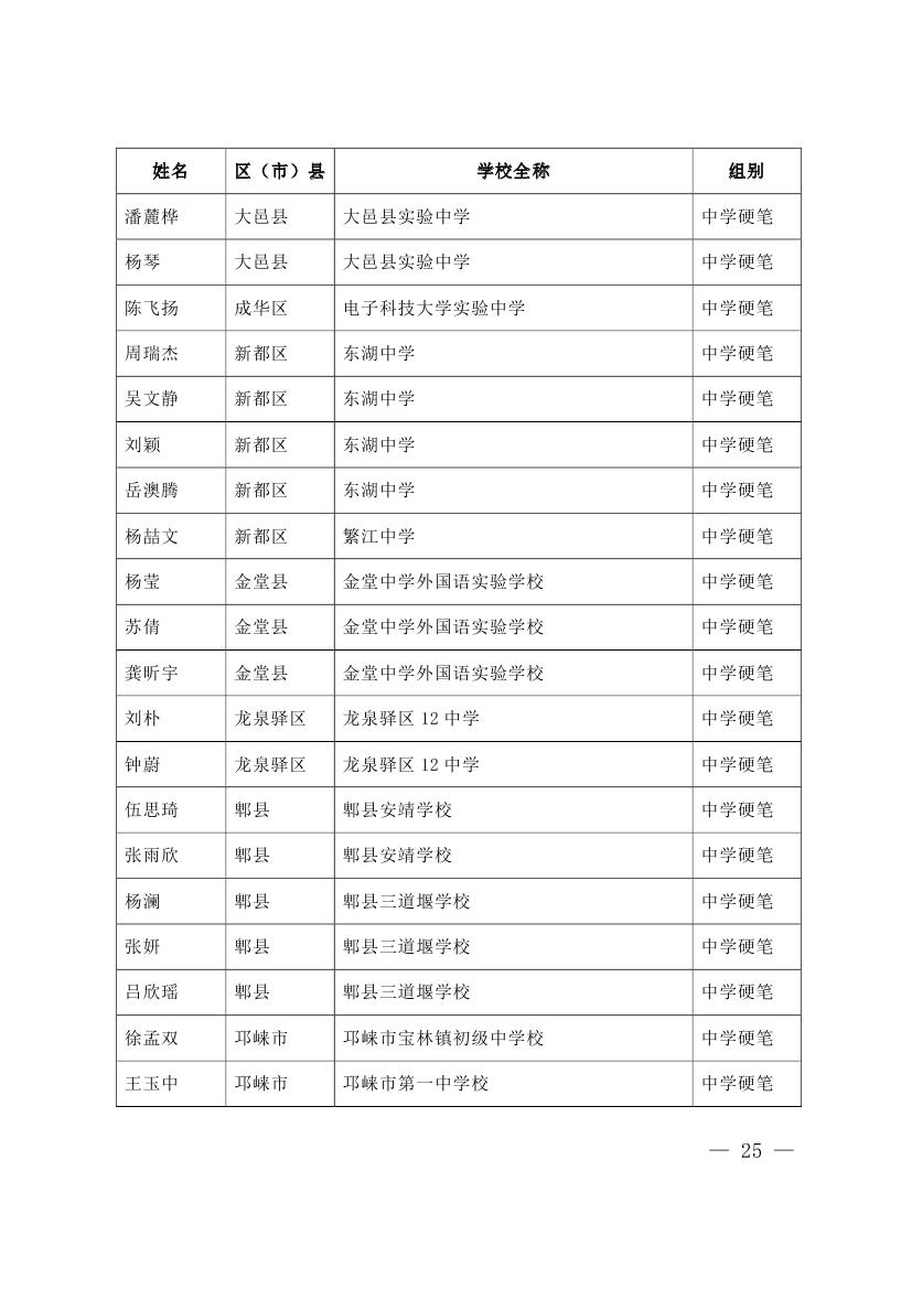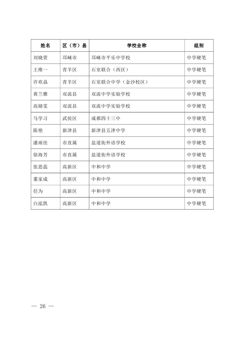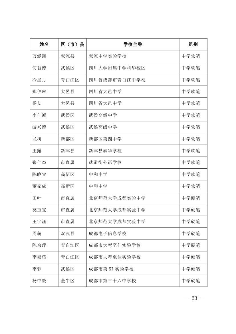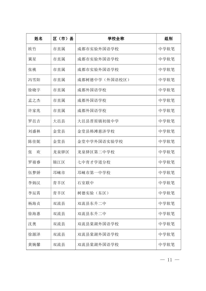 成都市2015年墨香书法展示获奖名单