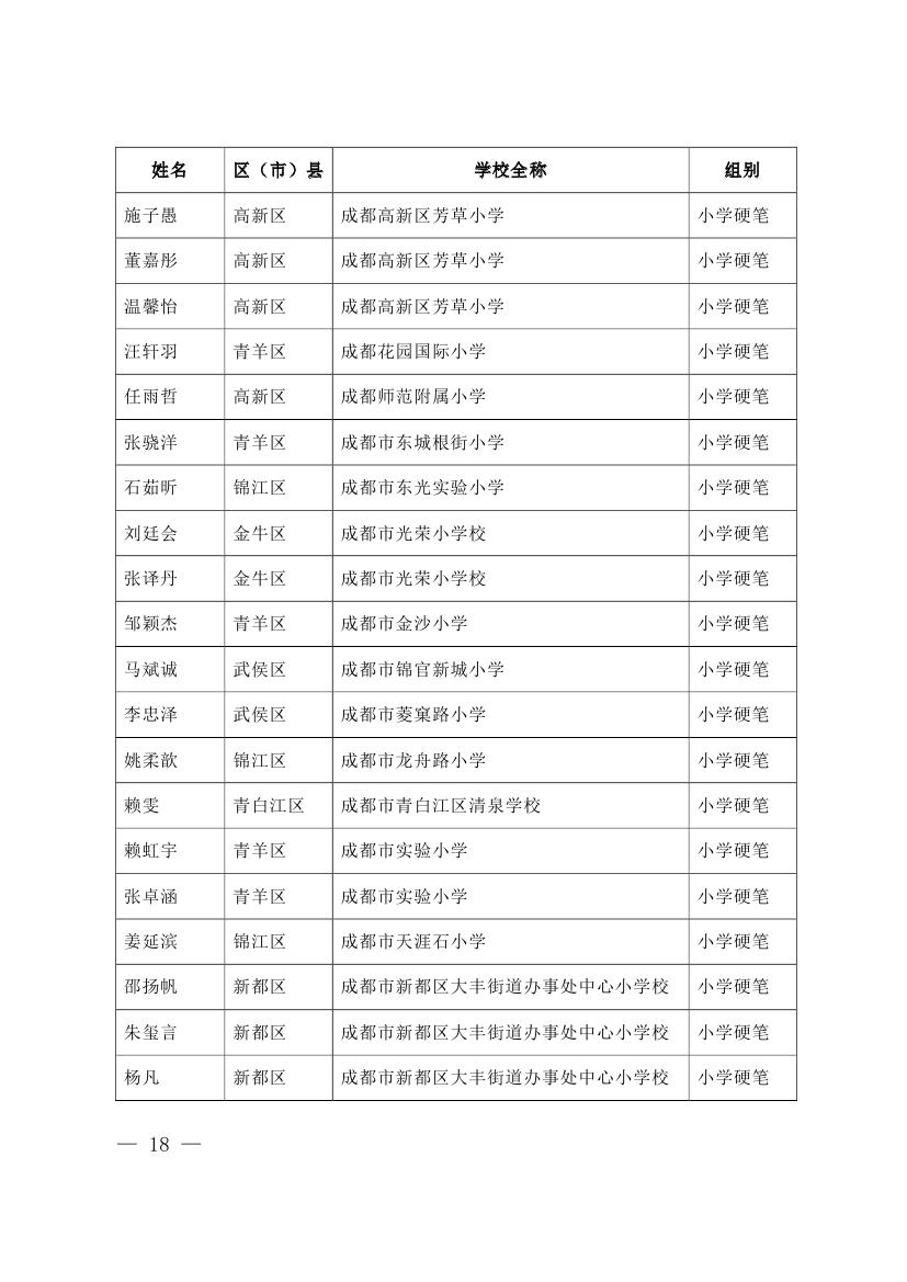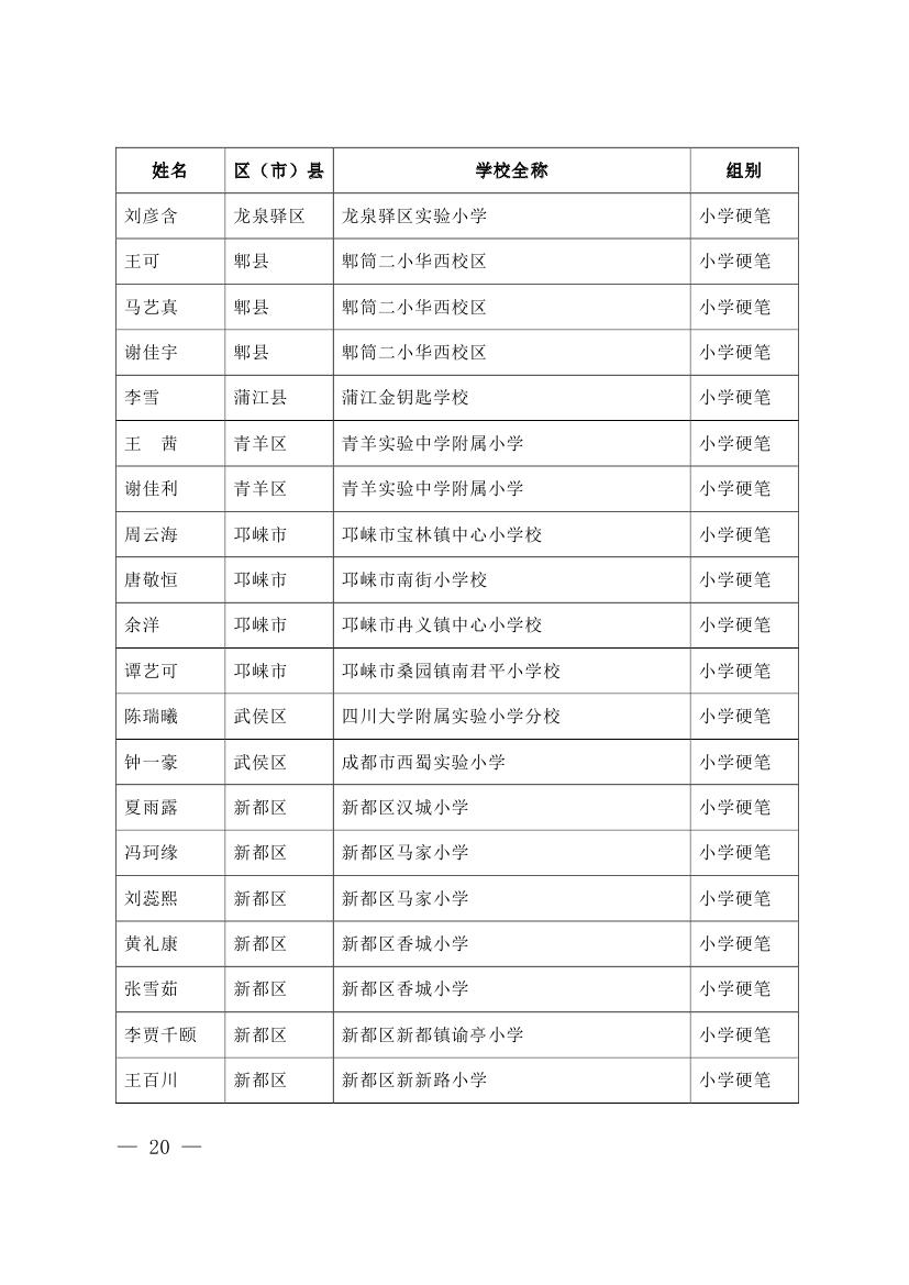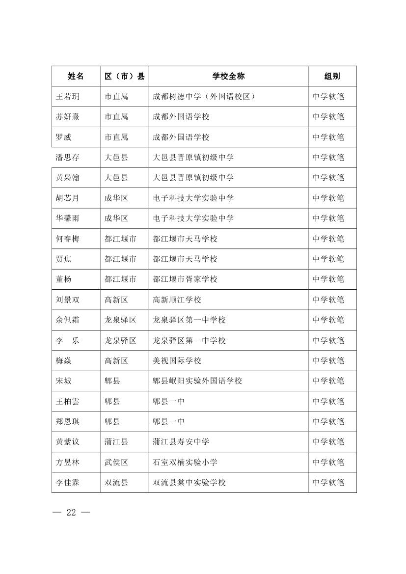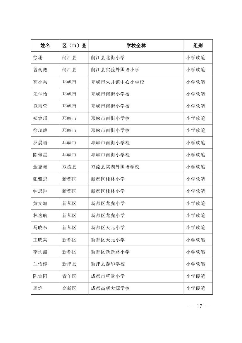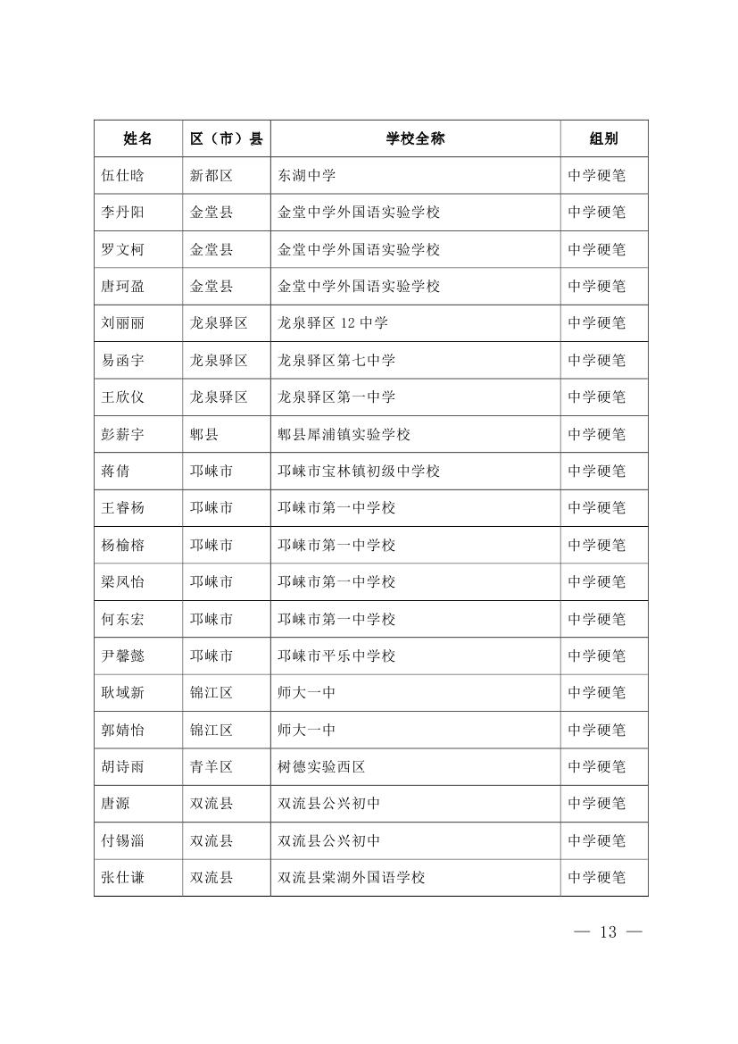 成都市2015年墨香书法展示获奖名单