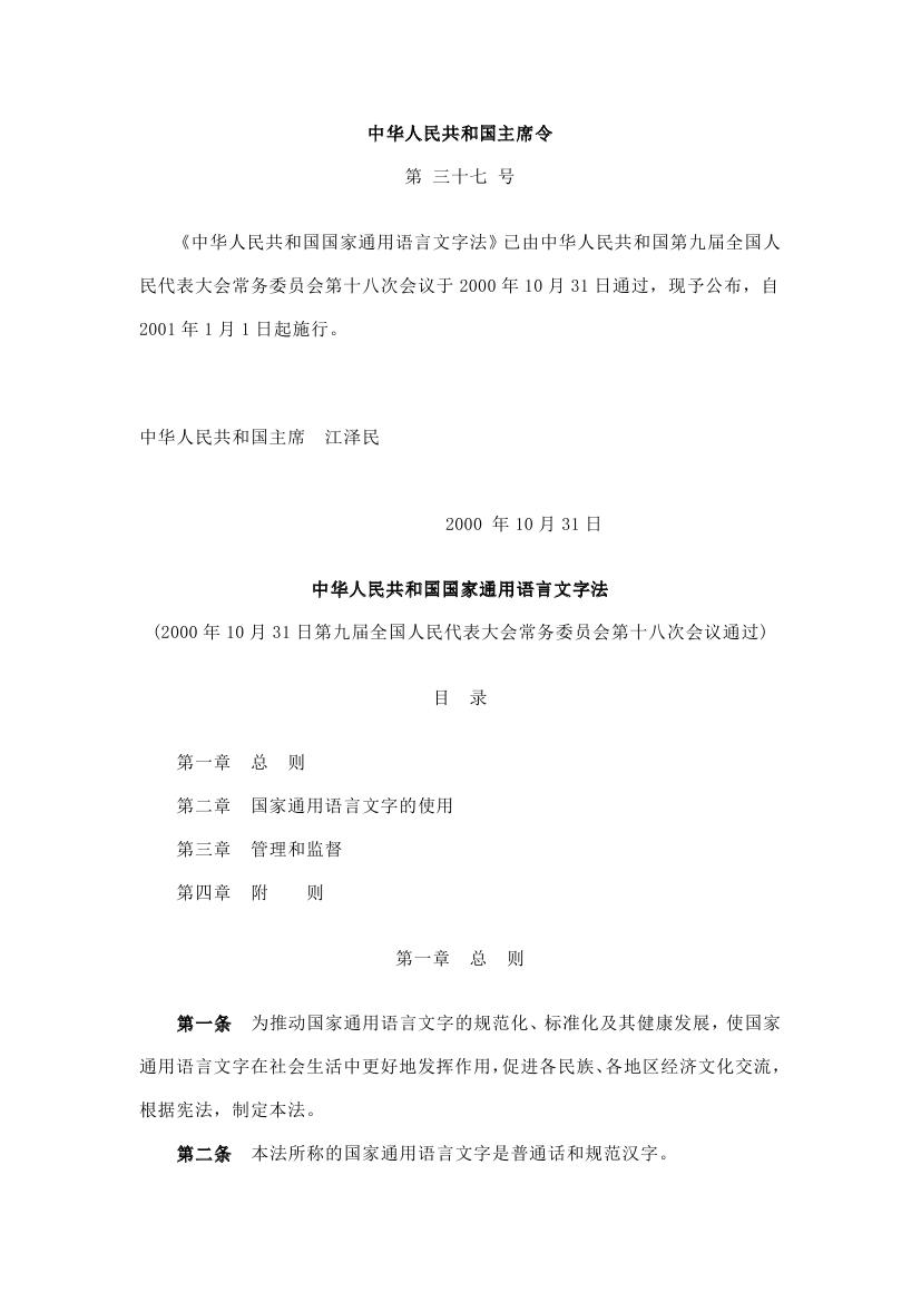中华人民共和国国家通用语言文字法